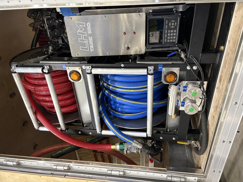 Pumping options include hydraulic-driven systems or gas-powered engines, and all components—meter, hose reel, and piping—are constructed of stainless steel for DEF compatibility. Flow rates can reach up to 90 GPM, enabling fast and efficient deliveries.